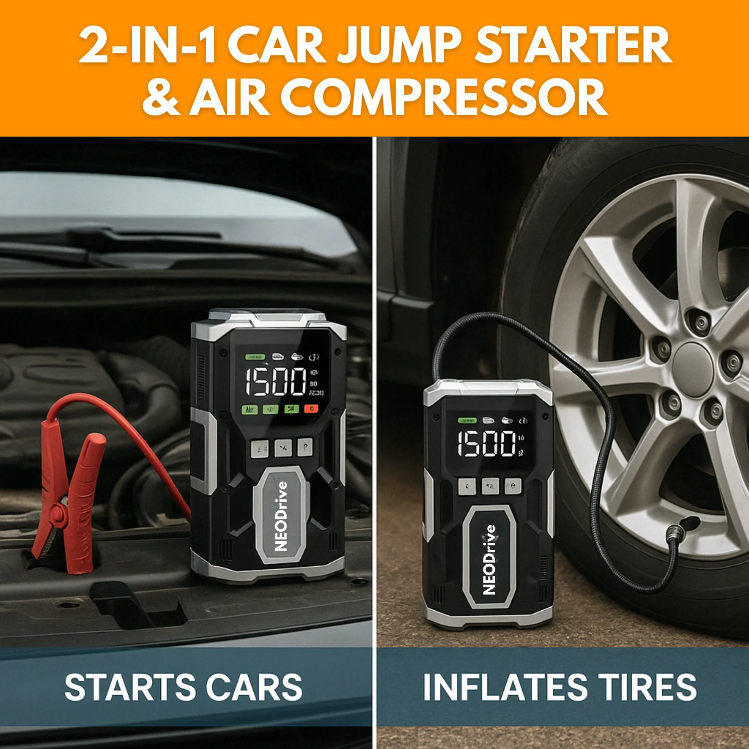 The VoltSurge is a powerful 20000mAh lithium jump starter with peak current of 2000A, capable of jump-starting petrol engines up to 8.0L and diesel engines up to 6.0L in seconds.